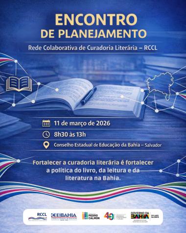 A atualização das diretrizes artístico-literárias promovida pelo Conselho Estadual de Educação da Bahia (CEE-BA) traz um novo foco às relações entre regulação educacional e políticas culturais no estado. Na próxima quarta-feira, 11 de março de 2026, acontece na sede do CEE-BA em Salvador o Encontro de Planejamento da Rede Colaborativa de Curadoria Literária (RCCL). O evento reunirá profissionais da literatura, leitura e do livro para discutir e estruturar diretrizes que promovam uma atuação coletiva mais eficaz.